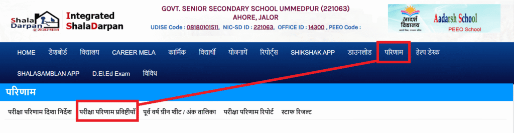 राजस्थान शिक्षा विभाग द्वारा संचालित शालादर्पण पोर्टल पर प्रत्येक विद्यार्थी के वार्षिक मूल्यांकन हेतु विभिन्न परीक्षाओं के अंक दर्ज किए जाते हैं। इसी प्रक्रिया में प्रथम परख परीक्षा / First Term Assessment के अंकों की प्रविष्टि विद्यालय स्तर पर की जाती है।