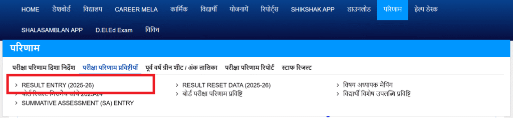 - पुन: निचे खुले विकल्प Result Entry (वर्तमान सत्र) का चयन करें |