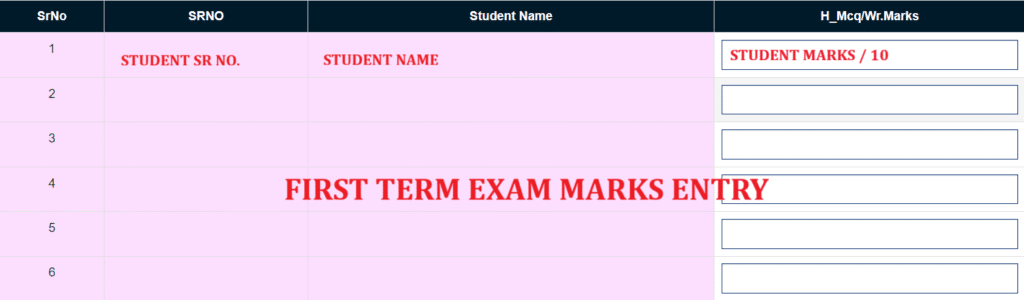 Step 4: विद्यार्थियों की सूची में अंक भरें –